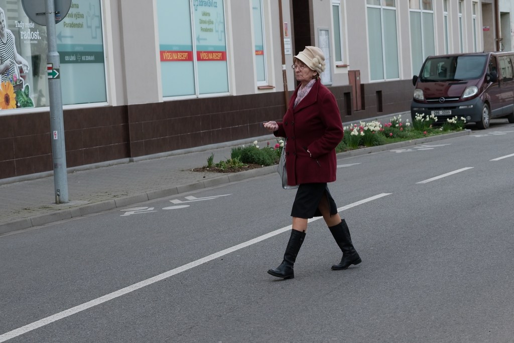 Ověřila jsem si, že 50 mm je moje ideální ohnisková vzdálenost. Ráda si vybírám zajímavosti a padesátka vyzobne co potřebuju, nechá trochu prostředí a není moc úzká na to, abych se s ní do těch ulic nevešla. A ověřila jsem si, že čím dál častěji dokážu z materiálu pořízeného v terénu vyzobnout zajímavý záběr. Zlepšuju se v pozorování a nedělá mi problém udělat dvě fotky jednoho subjektu a zdržet se tak na jednom místě. Všímám si okolního prostředí, posunu foťák kvůli kompozici a neřeším, že opravuju jedno místo a jeden záběr a jsem tím nápadnější.